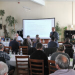Kurz nach 10.00 Uhr begrüßte der neue Bezirksvorsitzende Ernst Retz die doch zahlreich erschienenen Mitglieder und Ehrengäste im Veranstaltungssaal des Hotels Zug um Zug in Schemmerhofen. Da nach vielen Jahren unermüdlicher Arbeit für den Verband Jürgen Kath sein Amt als Vizepräsident des Verbandes für Süd-Württemberg turnusmäßig nicht mehr weiterführen wollte, er hatte dies seiner Frau versprochen, wurde der bisherige Bezirksvorsitzende Roland Sauter bereits am Landesfischereitag, 25.09.2021 als sein Nachfolger gewählt. Somit erklärte sich Ernst Retz bereit, seine Verbandsarbeit nun als Bezirksvorsitzender weiterzuführen. Die Generalprobe gelang ihm gut und nach Corona-bedingten Änderungen der geplanten Vorträge begann Herr Heffner vom Landschaftserhaltungsverband Landkreis Biberach e.V. (LEV) seinen sehr interessanten Vortrag.