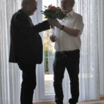 Nach dieser erfreulichen Wahl konnte mit Top 7, Ehrungen die Tagesordnung positiv weitergeführt werden. Sechs Anwesende konnten direkt geehrt werden (alle Details siehe Protokoll). Auch vergaß man nicht, sich bei Karin Novak mit einem Blumenstrauß für ihre Leistungen zu bedanken. Besonders hervorzuheben ist das Gedicht und das Ständchen: Über sieben Brücken musst Du gehen, beide vorgetragen von Werner Baur zu Ehren Jürgen Kath für seine in vielen Jahren geleistete unermüdliche Arbeit für den Verband. Sehr gerührt nahm der ehemalige Vizepräsident die Ehrung entgegen und verstand den Song als Hommage für seinen beschrittenen „Leidensweg“ bis zur erfolgreichen Fusion der 4 Verbände.