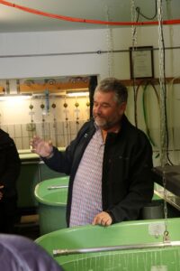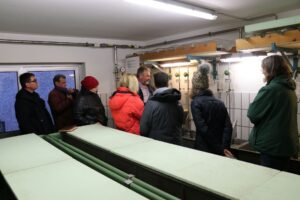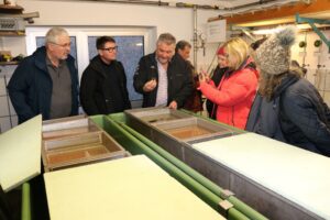 Im Anschluss an den theoretischen Teil führte Thomas Lang die Gäste in die einzigen Fischbrutanlage am gesamten Bodensee, die ausschließlich ehrenamtlich betrieben wird. Ausführlich erläutert er die einzelnen Schritte der Felchenaufzucht, von der Entwicklung der Eier bis hin zum Besatz der etwa drei Zentimeter großen Jungfische in den Bodensee. Dieses herausragende Engagement macht die Fischbrutanlage zu einem besonderen Vorzeigeprojekt für den gesamten See.